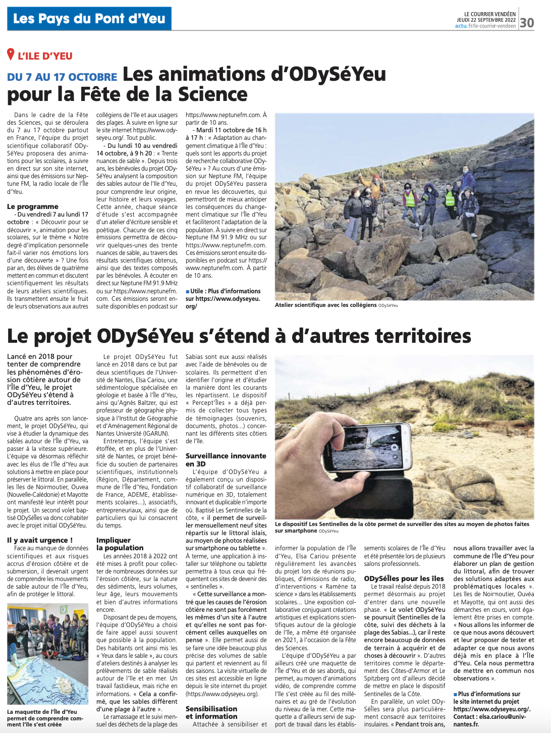 ODySéYeu est un programme innovant de recherches et de science participative visant à comprendre les mouvements de sables autour de l'île d'Yeu, à mesurer leur impact sur l'érosion côtière et à permettre des usages et une gestion plus durables du littoral de l'île.